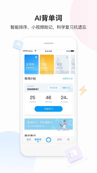 每日跟读,新增明星视频领读,精美卡片分享,带你玩转口语。全新拍照翻译,涂抹+全屏,模式随心切换!